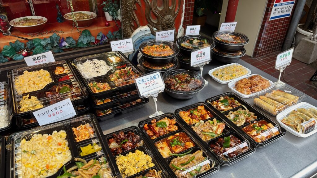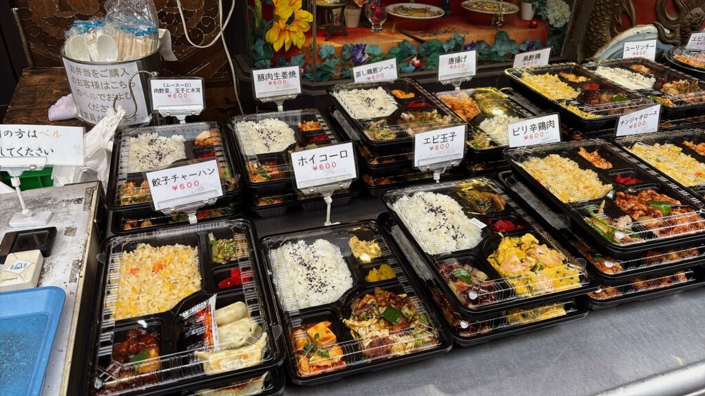 これでもかと陳列されていたので一例を挙げますと、餃子チャーハン弁当、蒸し鶏葱ソース弁当、黒酢鶏弁当、中華丼、麻婆豆腐丼、豚足丼、お惣菜二点もしくは三点盛り、お惣菜(チャーハン、麻婆豆腐、餃子、春巻き)。