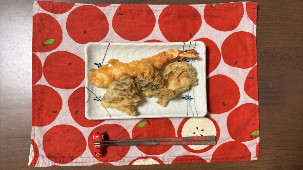 どちらも素材の味がしっかりしていて、塩は特にかかっていなかったので子供に取り分けがしやすいと思いました。今年の大晦日も大海老天を出してくれるかは不明ですが、海老は弾力があったのでよく噛んで食べるように注意しましょう。