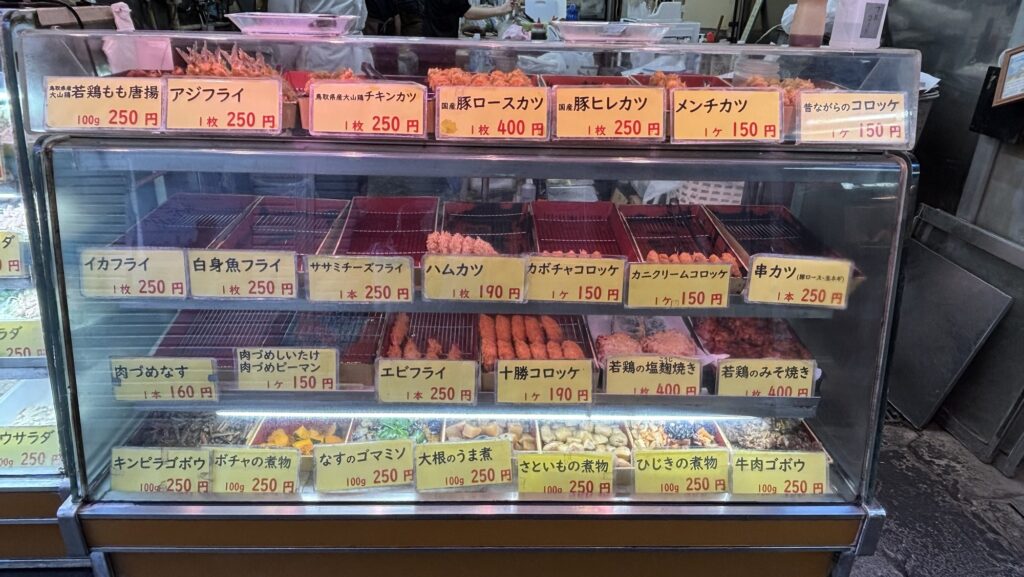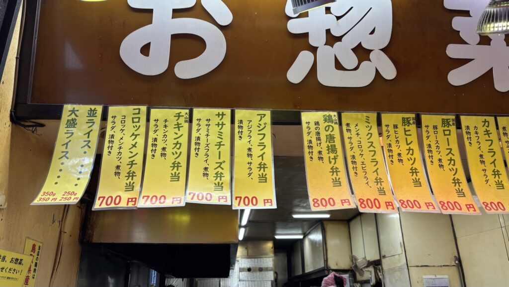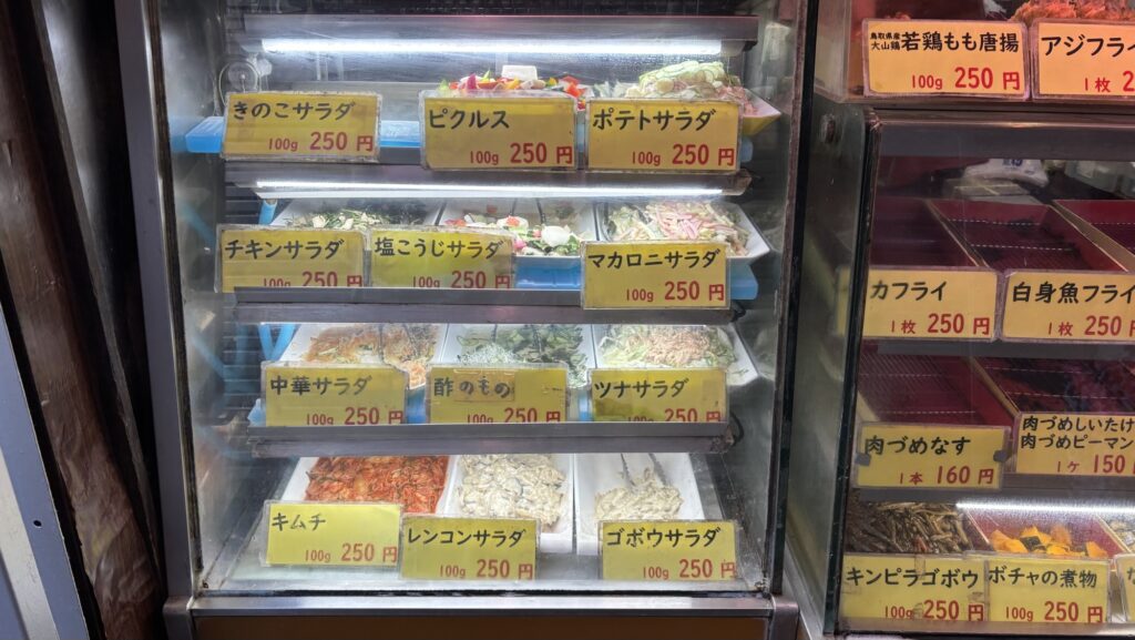 ずらりと並んだお惣菜と揚げ物。そしてお弁当は写真の通りです。