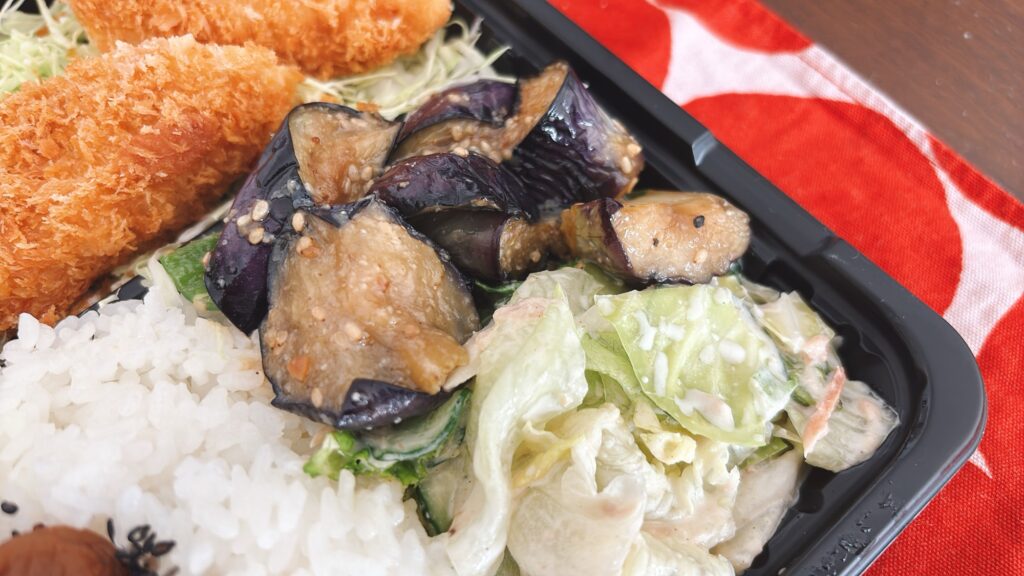 そして選べるお惣菜は、ナスのごま味噌とツナサラダを選びました。